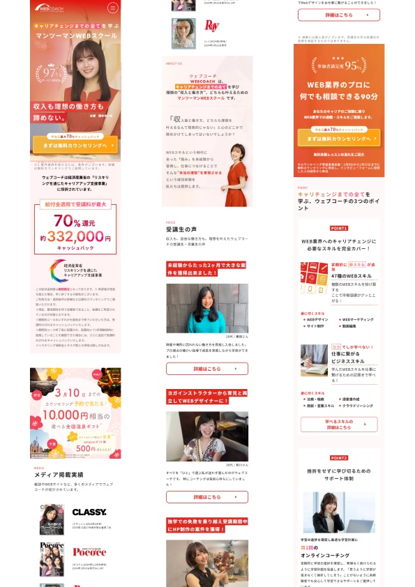 【意識した亊】どのデバイスでみても見やすくなるようにレスポンシブデザインを行いました。